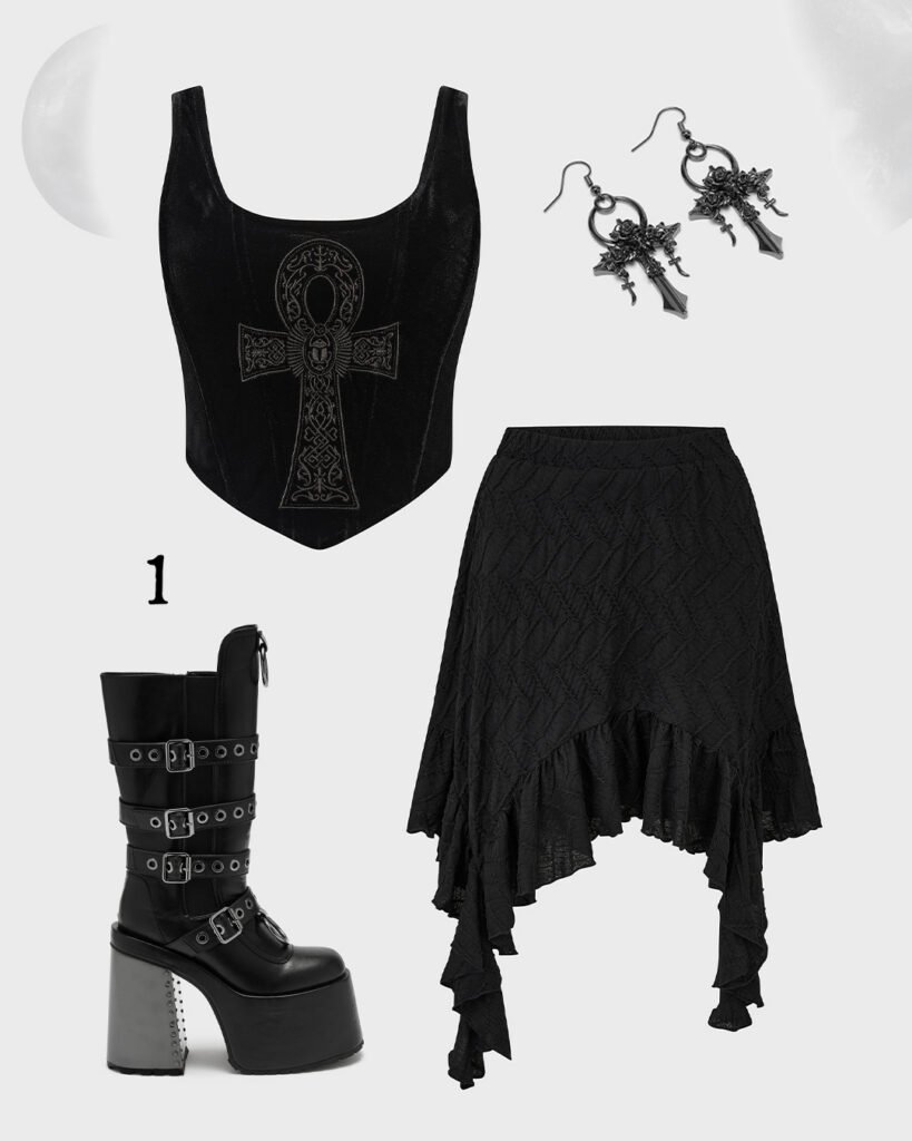 A dark romance of velvet, satin, and intricate detailing for elevated gothic fashion.